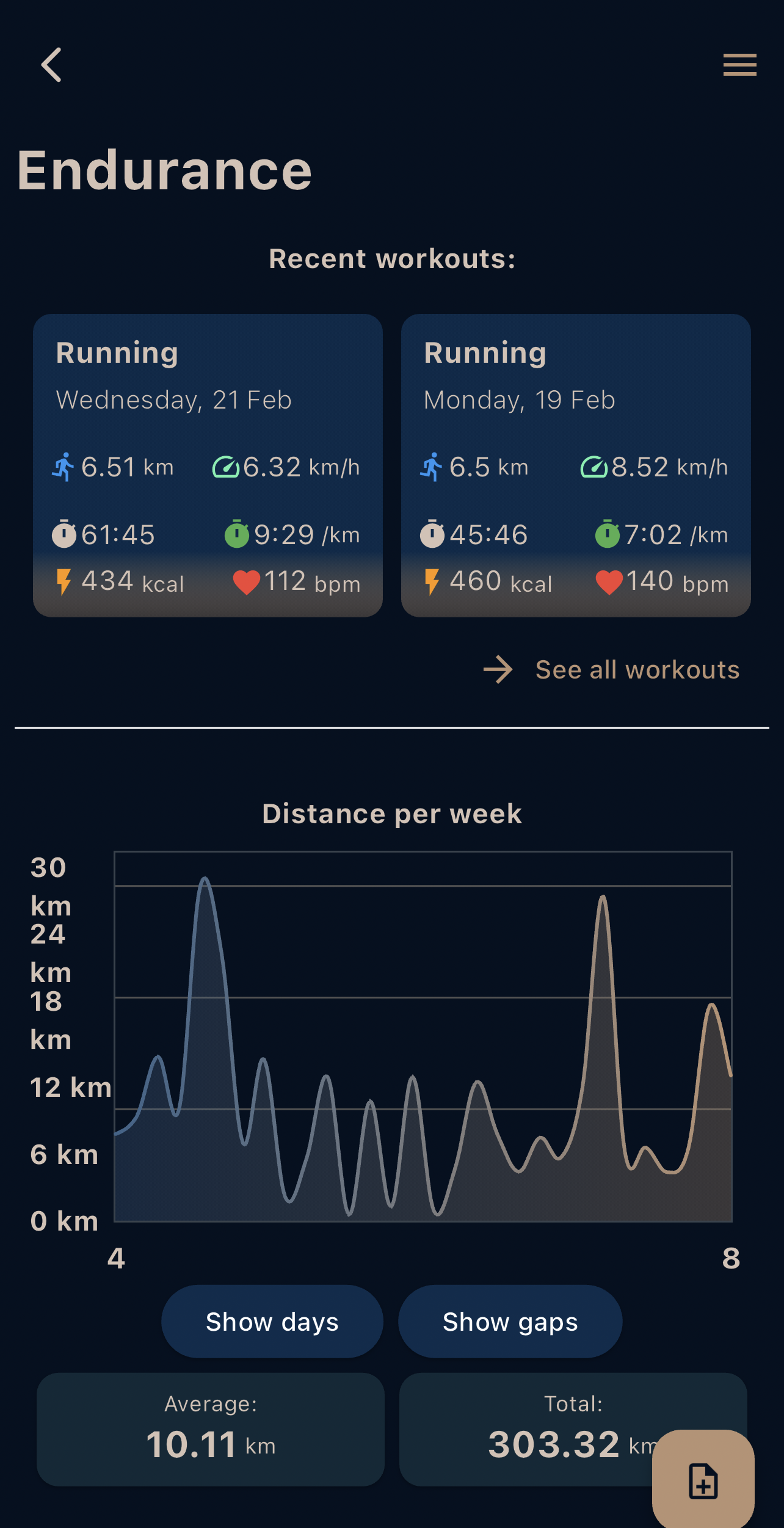 We support traditional strength and any endurance workouts. With special integrations for specific sports. Finally one place for all your workout data.